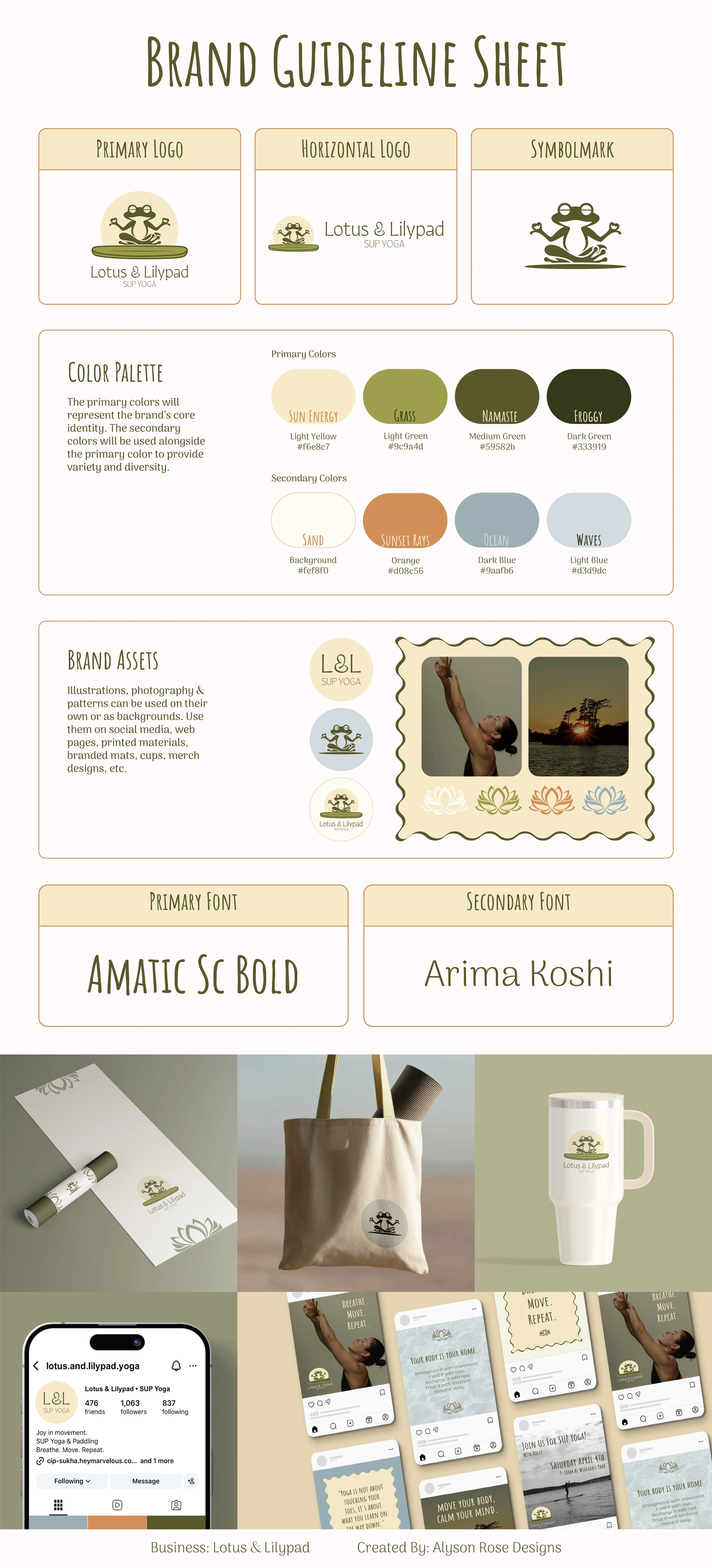 Lotus & Lilypad is a stand up paddle board yoga brand that blends play with effort. We wanted this brand to feel like finding ease and joy in each movement. Inspired by the connection with nature that SUP yoga brings while being out of the water. Reminding you to slow down and connect you with your breath. Breathe. Move. Repeat.